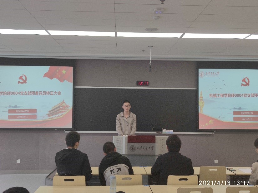 2021年4月13日,根据硕0004党支部发展党员工作计划,经征求党员和群众意见、支部委员会审查同意,硕0004党支部召开支部党员大会,讨论预备党员陈世省、韩宇飞、李超三名同志的转正问题。