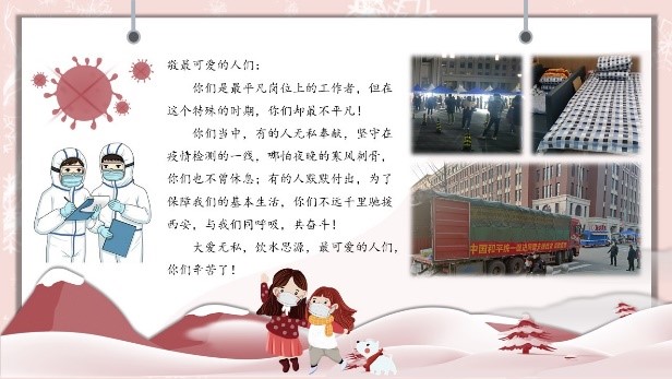 中共西安凯发最新登录网站机械学院硕1002党支部于1月6日召开线上组织生活会,围绕本次抗疫过程中同学们的亲身经历进行了分享与讨论,并且制作了电子感恩卡片,真诚地向一线工作人员说一句“辛苦”、道一声“感谢”。