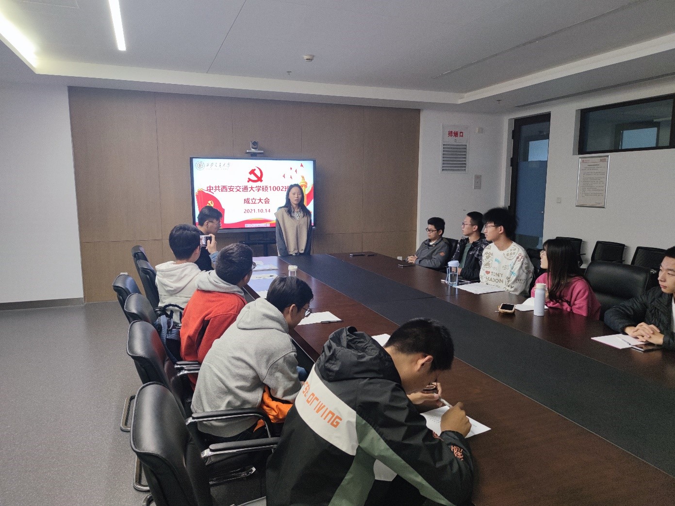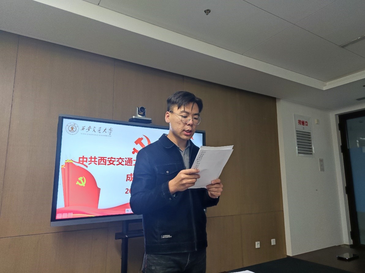 最后,中国共产党西安凯发最新登录网站机械学院硕1002支部成立大会在雄壮的《国际歌》歌声中胜利闭幕。