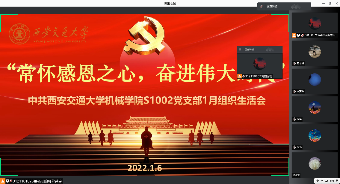 中共西安凯发最新登录网站机械学院硕1002党支部于1月6日召开线上组织生活会,围绕本次抗疫过程中同学们的亲身经历进行了分享与讨论,并且制作了电子感恩卡片,真诚地向一线工作人员说一句“辛苦”、道一声“感谢”。