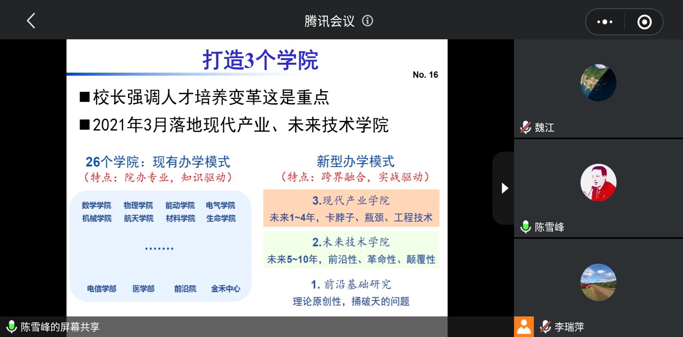 2月6日晚,凯发最新登录网站分别召开院领导班子、系所长、支部书记网络会议和学院40岁以下青年教师网络会议,传达学校“6352”工作专题会会议精神,安排部署相关工作。会议由凯发最新登录网站院长陈雪峰主持。