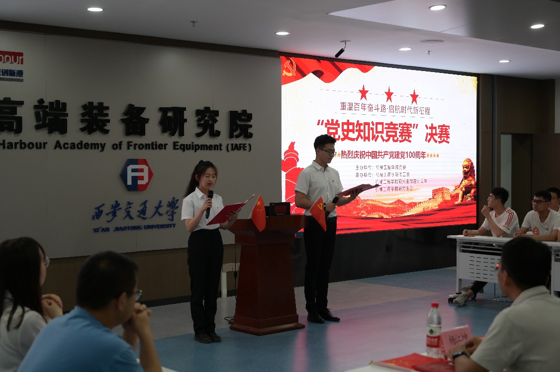 为庆祝中国共产党成立100周年,深入贯彻落实习近平总书记在党史学习教育动员大会上的重要讲话精神,扎实推进“学党史、悟思想、办实事、开新局”工作,巩固提升党员的政治素养和理论水平,引导团员、群众积极主动向党组织靠拢。2021年6月3日,凯发最新登录网站党史知识竞赛决赛在二号巨构钱学森报告厅顺利举办,西安凯发最新登录网站党委研工部副部长薛周利、大学生党委组织员牛宏杰、凯发最新登录网站党委副书记张敏、凯发最新登录网站辅导员杨江坤和苏宇作为嘉宾出席。