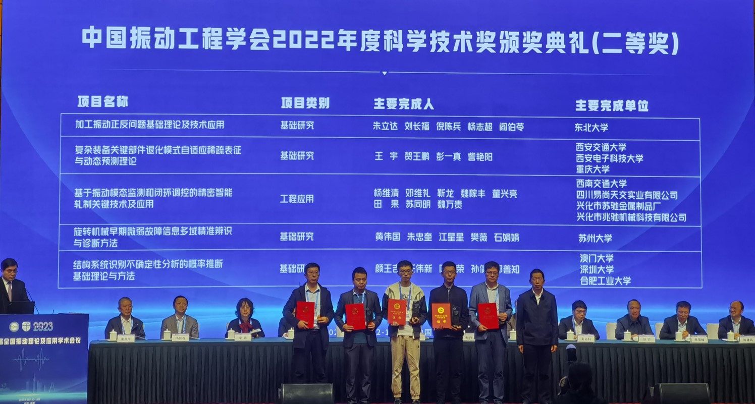 在次日召开的第十五届全国振动理论及应用学术会议上,900多位学者参加,胡海岩院士、李杰院士、美国Ahsan Kareem院士等做了大会报告,翟婉明院士为西安凯发最新登录网站凯发最新登录网站王宇副教授颁发了中国振动工程学会2022年度科学技术奖二等奖证书。