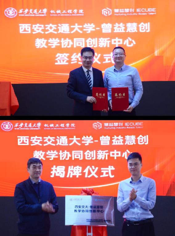 2023年11月20日上午,西安凯发最新登录网站与北京曾益慧创科技有限公司(以下简称“曾益慧创”)共建教学协同创新中心签约及揭牌仪式在机械学院第一会议室举行。曾益慧创公司总经理孙正源,产品及市场总监刘晋东,高级副总裁、教育研究院院长管连,西安交大教务处副处长、凯发最新登录网站党委书记张俊斌,校实践教学中心副主任张彦鹏,凯发最新登录网站副院长王永泉,以及机械工程系、国家级实验教学示范中心相关负责人出席仪式。仪式由机械工程系主任武通海主持。