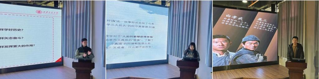 研究生朱天伦分享了黄仁宇的著作《万历十五年》,该书从“大历史观”的研究视角出发,通过对朱翊钧,张居正,申时行,海瑞,戚继光,李贽六位关键历史人物的描述,探析了晚明帝国走向衰落的深刻原因。最后,朱天伦同学总结道:作为新时代新青年,我们应当学好历史,矢志奋斗,勇担使命,为国奉献。研究生张帆分享了日本哲学家岸见一郎、日本作家古贺史健编著的哲学著作《被讨厌的勇气》,这本书通过“青年与哲人的对话”的叙述形式,对“人如何能够获得幸福”这个哲学问题进行了简单却深刻的探讨。她说:“真正的自信源自对自我的接纳,承认和接受自己的平凡,但同时学会欣赏自己,相信自己的力量,勇敢地面对困难和挑战”。研究生胡即昌分享了作家陈忠实的代表作《白鹿原》。小说以陕西关中地区白鹿原上白鹿村为缩影,通过讲述白姓和鹿姓两大家族祖孙三代的恩怨纷争,表现了从清朝末年到二十世纪七八十年代长达半个多世纪的历史变化。