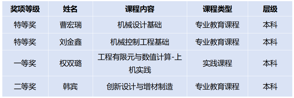 机械学院积极落实课程思政“一院一策”建设方案,将课程思政以专题形式纳入新教师教学能力培训内容体系,积极组织教师参加相关培训、研讨及竞赛活动。同时,学院将课程思政作为师德师风教育和基层教学活动开展的重要抓手,充分发挥系所党支部、虚拟教研室、名师工作室、课程团队等组织的作用,推行课程思政集体备课制度,常态化开展课程思政教学研讨,形成了党委牵头负责、部门齐抓共管的工作机制。此外,学院还积极鼓励和支持领军教授、教学名师带头开展课程思政建设,加大对课程思政重点、难点及前瞻性问题的研究力度,全面提升教师课程思政教育教学水平。本次获奖教师以青年骨干教师为主,既包括国家级领军人才,也包括普通一线实验教师,彰显了教师参与课程思政的积极性和建设成效。