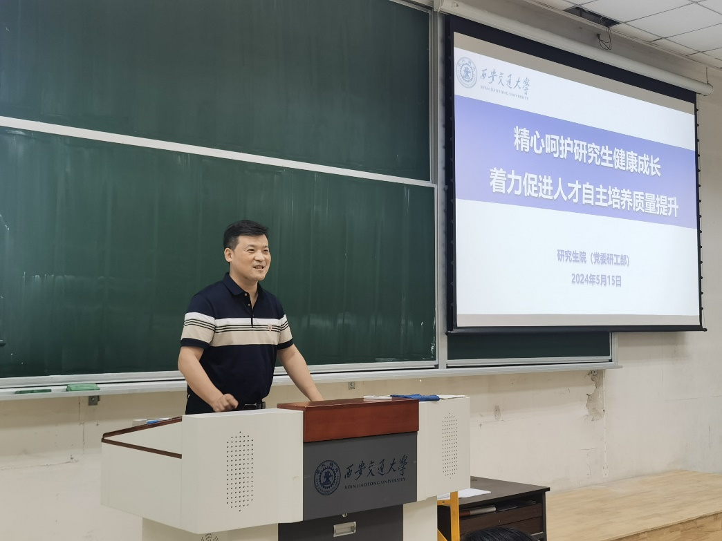 薛周利作《精心呵护研究生健康成长着力促进人才自主培养质量提升》专题报告。他从立德树人根本任务、构建和谐导学关系、研究生思政工作基本情况三个方面介绍了研究生教育的相关政策和有关情况。他强调导学关系是研究生教育中最重要关系之一,需要以构建导学共同体为切入点,落实导师立德树人职责,加强研究生思政工作,营造良好导学关系。
