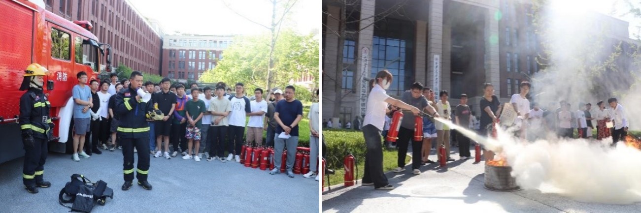 疏散结束后,沣西新城消防救援大队创新港消防救援站官兵向师生详细讲解了火灾中逃生、自救的正确方法,以及液压剪扩钳、灭火器等消防器材的使用方法,邀请了部分教师和学生体验使用灭火器灭火的过程。