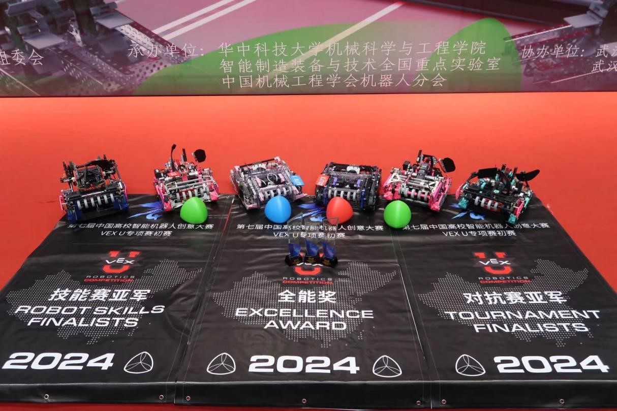 2024年8月22日第七届中国高校智能机器人创意大赛圆满落幕。来自西安凯发最新登录网站的XJTU1队,凭借卓越的技术实力与团队协作,在VEX-U智能机器人决赛中荣获技能赛冠军、对抗赛冠军及全能奖,成功加冕“三冠王”,这一辉煌战绩不仅彰显了团队的创新精神与技术实力,也是继2017-2018 VEX赛季之后的又一次巅峰时刻。