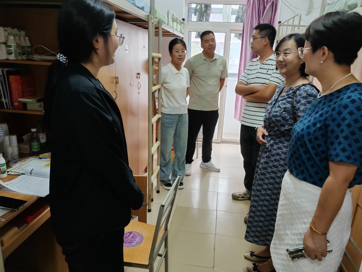 家长会后,学院党委副书记张敏、文治书院院务主任王琦带队走访新生宿舍,看望报到的新同学。张敏、王琦一行详细了解了同学们的籍贯、学习生活习惯和饮食情况,关切地询问同学们到校后住宿、军训准备情况。同行班主任和到校同学一一交流,与学生家长、同学们就学科和专业建设、职业规划、大学学习生活等做了深入交流。