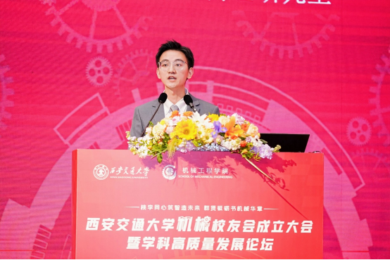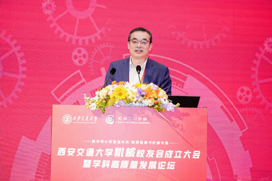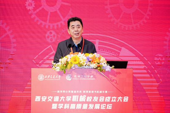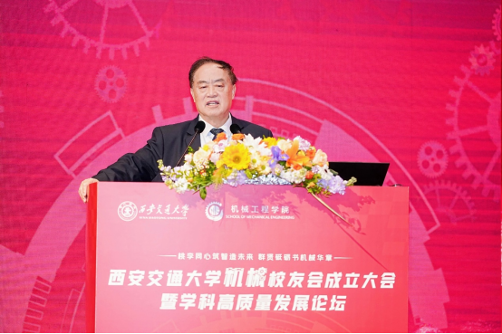 单智伟代表学校致辞。他表示,校友会的成立将进一步团结凝聚广大机械校友,为全球的交大机械人搭建联络情感、交流合作和爱校荣校的平台,共同助力学院和学科的高质量发展。他希望校友会做好服务校友的“贴心人”,联系校友的“连心桥”,更要充分挖掘和发挥资源优势,组织广大校友探索深度参与产教融合的新模式,助力校友与母校双向赋能,共创辉煌。