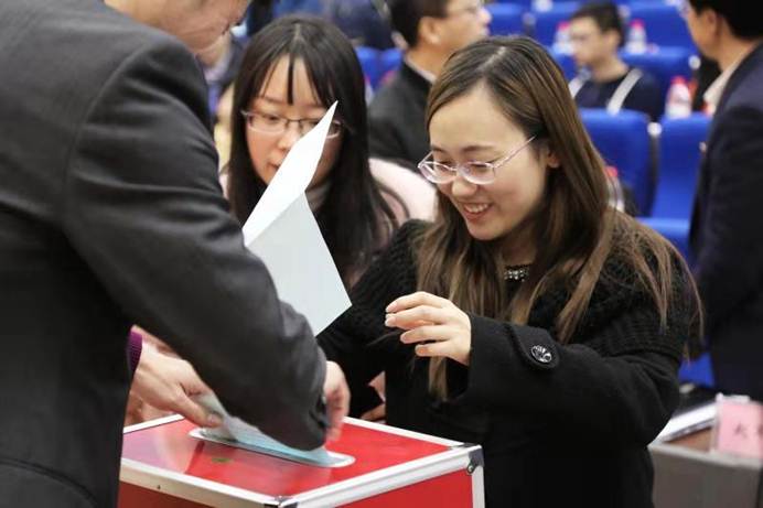 接下来由组织部副部长高彦同志宣读党委委员候选人的批复,大会一致通过总监票人、监票人、总计票人、计票人建议名单后选举工作正式开始,选举工作由总监票人董光能同志主持,在工作人员宣读分党委委员候选人简介之后,到场的196名党代表进行现场投票选举。投票结束后,监票人计票人前往场外进行计票工作,大会继续进行。