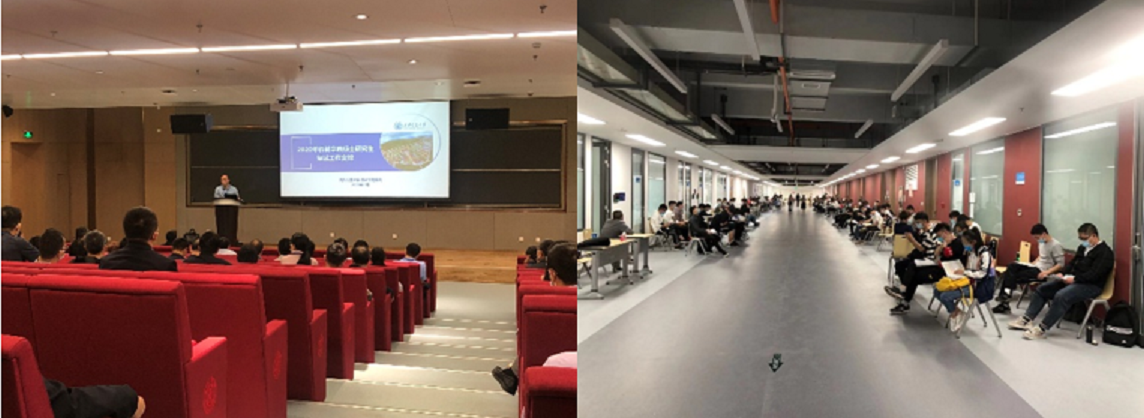 为了在疫情防控背景下做好今年的研究生招生复试工作,学院多次召开招生工作会,包括招生领导小组工作会、面试专家组长培训会、秘书培训会、场内外工作人员培训会等。成立了复试工作小组:三随机系统组、复试专家组、后勤保障组、现场确认组、复试防疫组、技术保障组等。制定切实完善的复试工作方案,明确各工作组人员的具体职责,确保复试各项工作可以安排有计划、方案实施有步骤、突发情况有预案。根据学校“三随机”系统的要求,为了保证试题难易程度相当,学院组织试题专家组对各系所提交的1000余道专业考核题目,进行了两轮审核、修改、定稿。